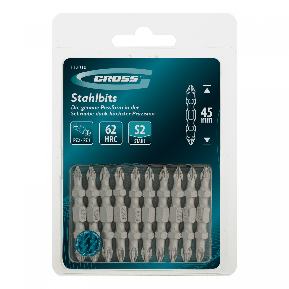 Бита двухстор., PZ2-PZ1х45мм, сталь S2, 10шт. Gross