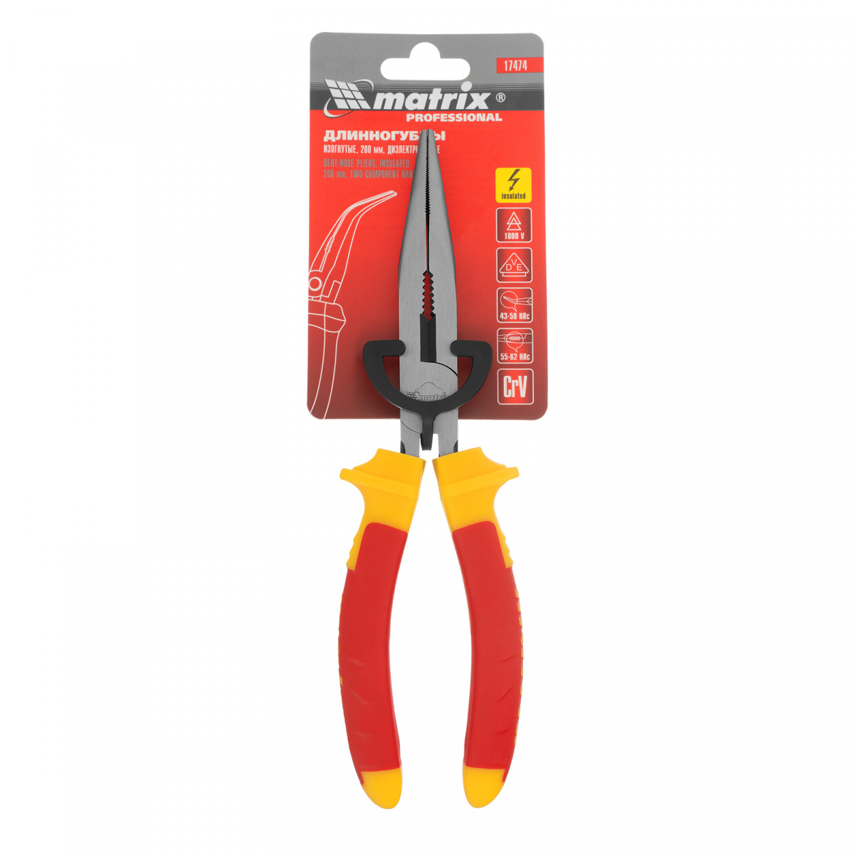 Изогнутые длинногубцы Matrix Insulated 17474 длиной 200 мм, с двухкомпонентными рукоятками, облегчают работу в труднодоступных местах. Они пригодятся не только ремонтникам и слесарям, но и электромонтажникам, т.к. рукоятки обладают диэлектрическими свойствами и рассчитаны на напряжение до 1000 В. Важно — техника безопасности запрещает выполнять работы под напряжением!
