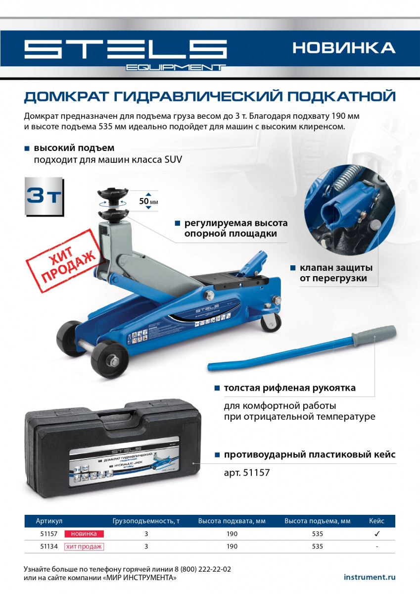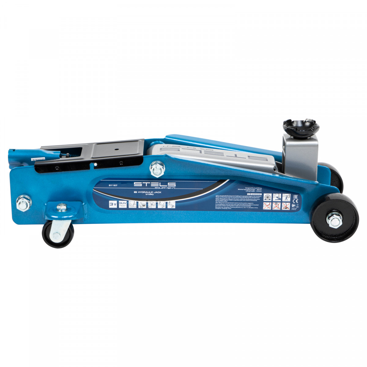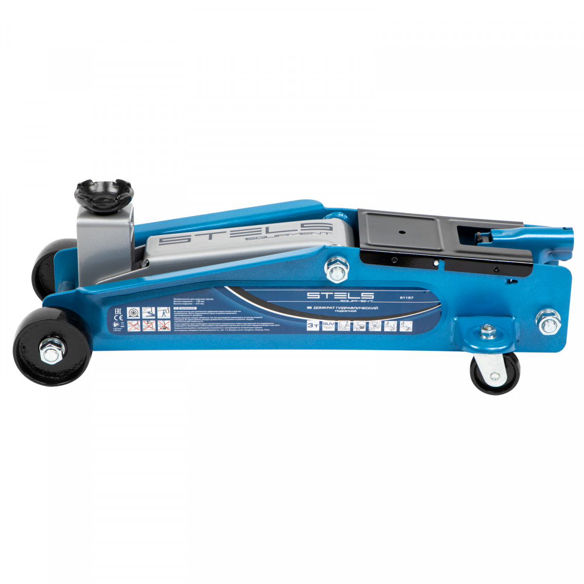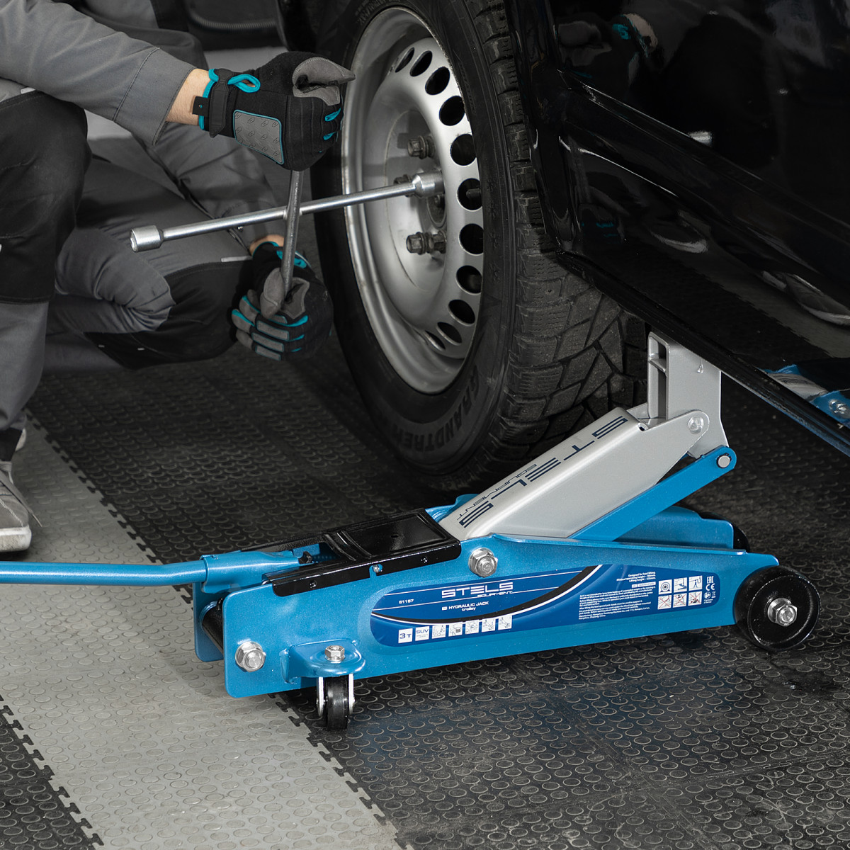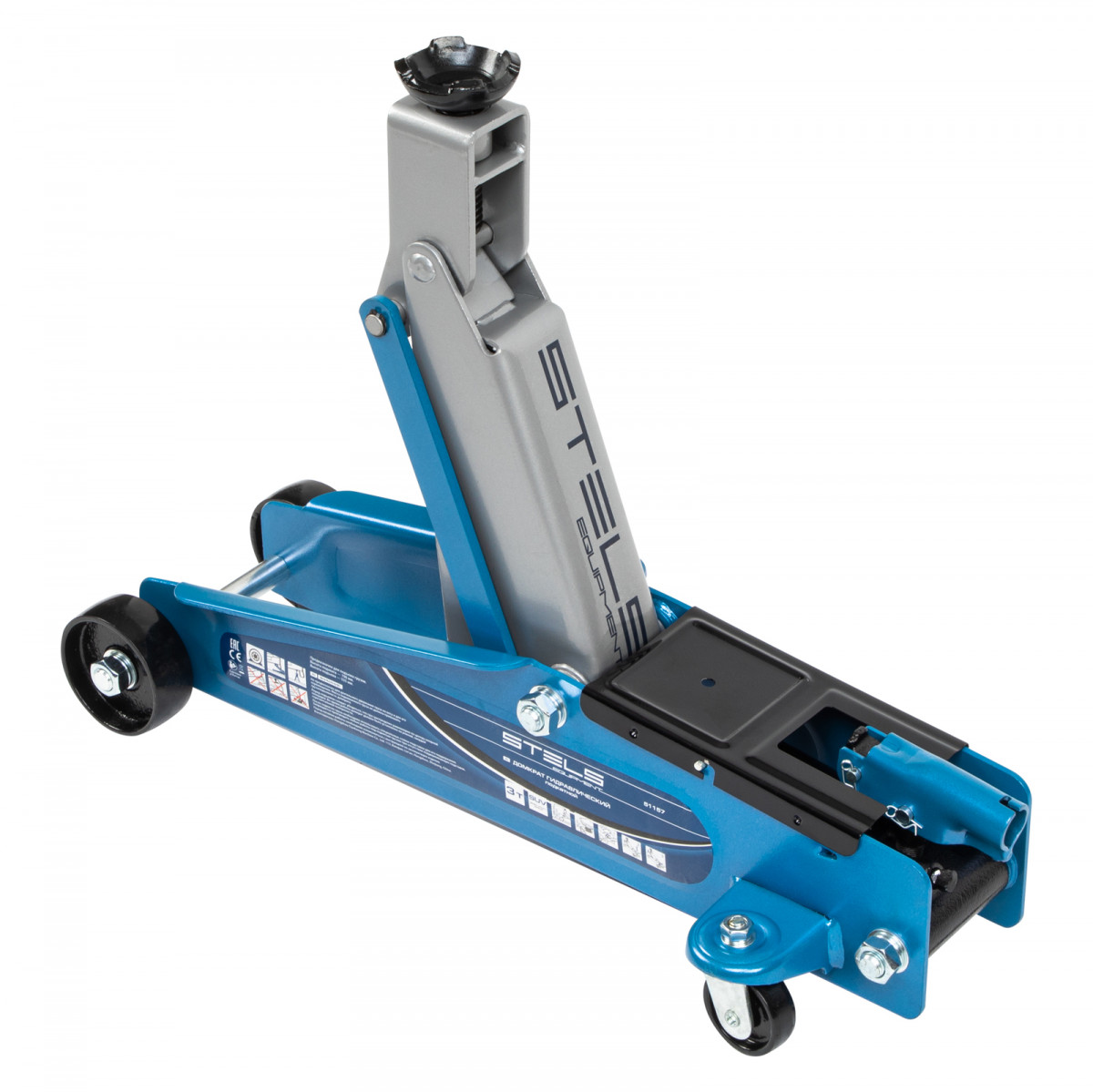 Подкатной гидравлический домкрат Stels 51157 с высоким подъемом 190 мм позволяет поднимать грузы весом до 3 т на высоту 535 мм и подходит для автомобилей класса SUV с увеличенным дорожным просветом. Может использоваться для самостоятельного обслуживания авто.