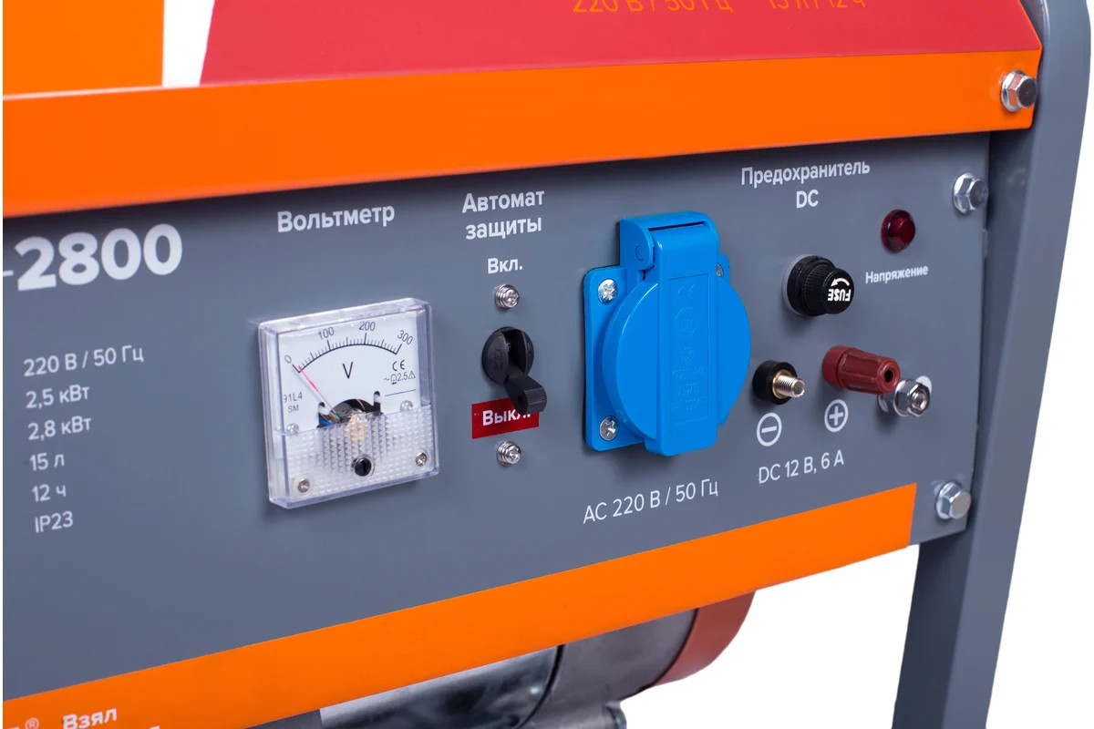 Бензиновый генератор мощностью 2800 Вт отлично подходит для использования в доме, на даче или во время отдыха на природе. Обеспечивает надежное электроснабжение в случае отключения основного источника энергии.