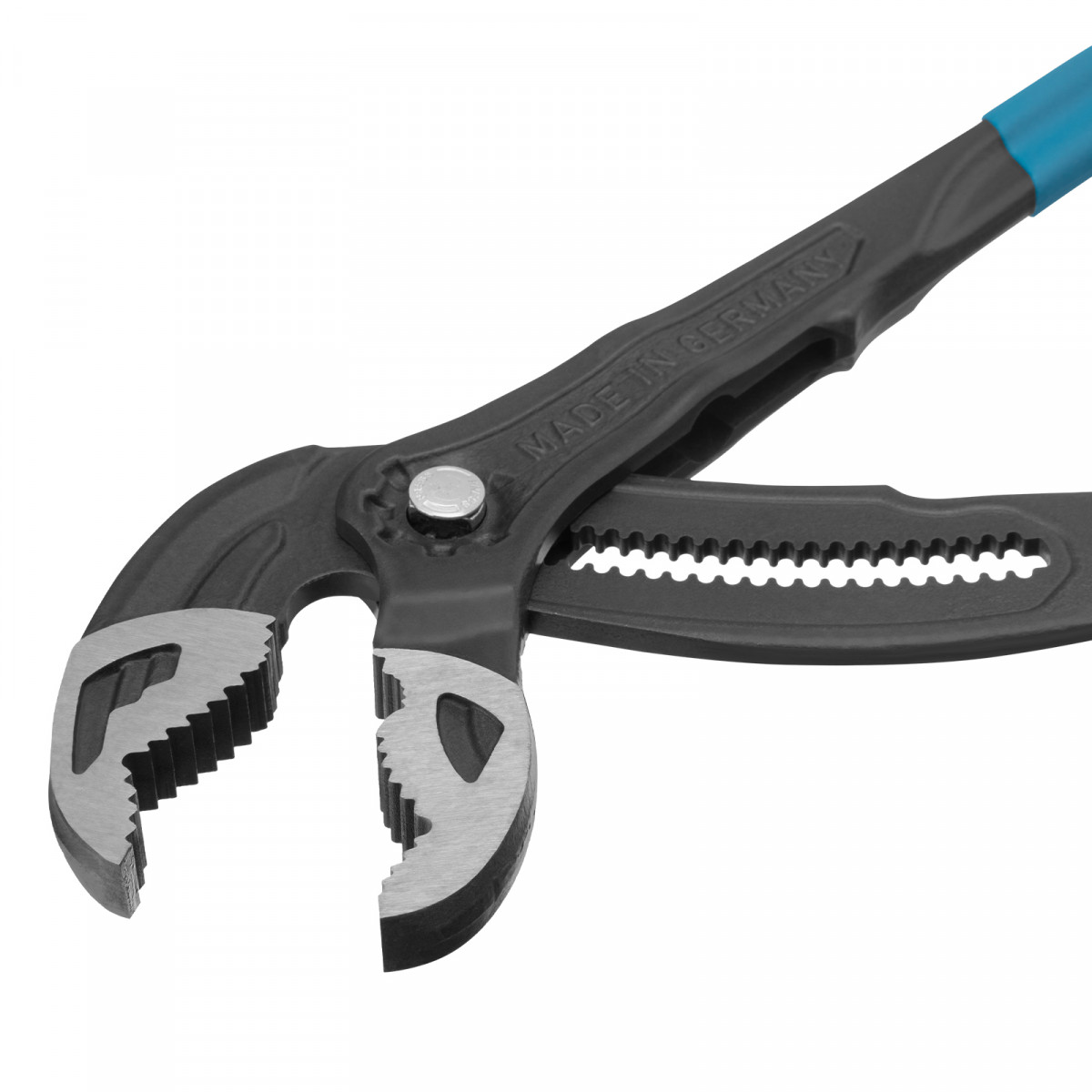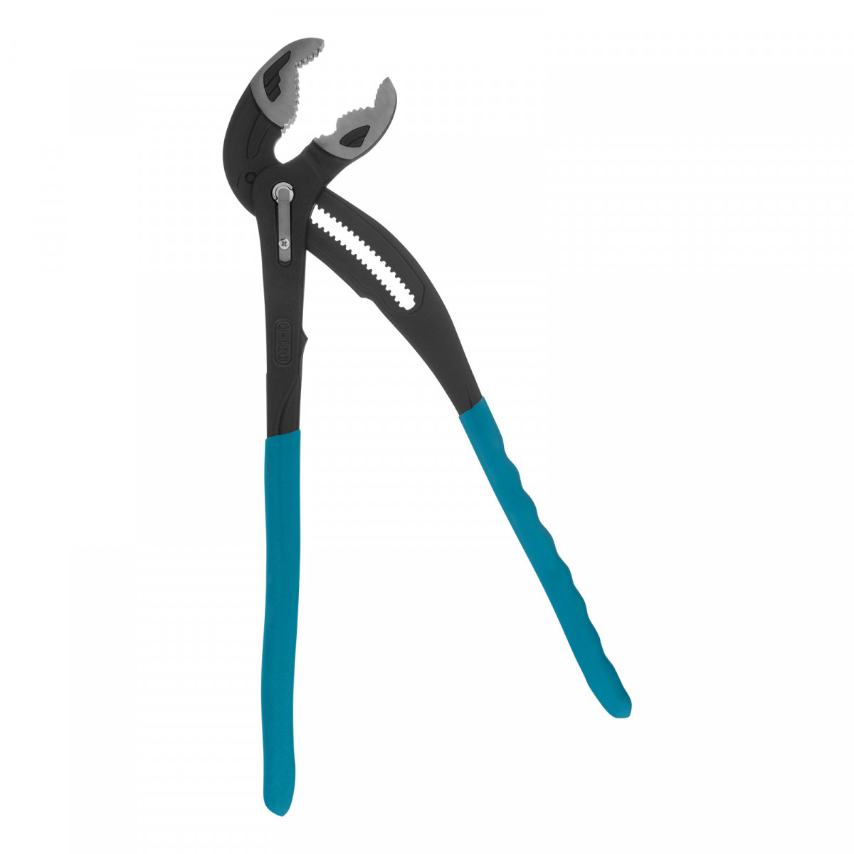 Переставные клещи Gross 15729 длиной 400 мм, с кнопочным механизмом и обливными рукоятками, — профессиональный инструмент для работ с сантехникой, фитингами, трубами и т.д. Рабочие губки с насечками обеспечивают надежный захват изделий диаметром до 95 мм. Клещи удобны для работы в труднодоступных местах.