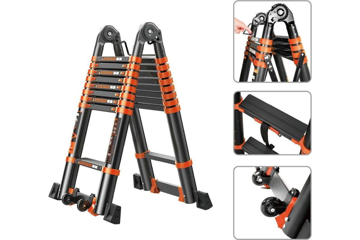 Лестница телескопическая STARTUL двухсекционная из серии BLACK LINE ST9932-058 представляет собой надежное и удобное решение для выполнения различных задач на высоте. Изготовленная из алюминия, она сочетает в себе легкость и прочность, что обеспечивает удобство в транспортировке и устойчивость при работе. Лестница имеет двустороннюю конструкцию и может достигать общей длины 5,8 метра, что позволяет использовать ее на значительной высоте. В сложенном состоянии она занимает минимальное пространство, что облегчает ее хранение. Широкие ступени и возможность использования на разноуровневых поверхностях делают ее универсальным инструментом для различных условий. Максимальная рабочая нагрузка до 150 кг гарантирует безопасность и надежность в эксплуатации.