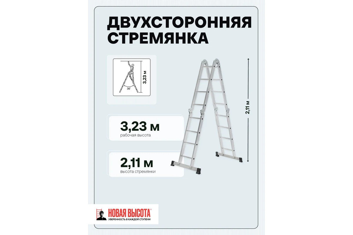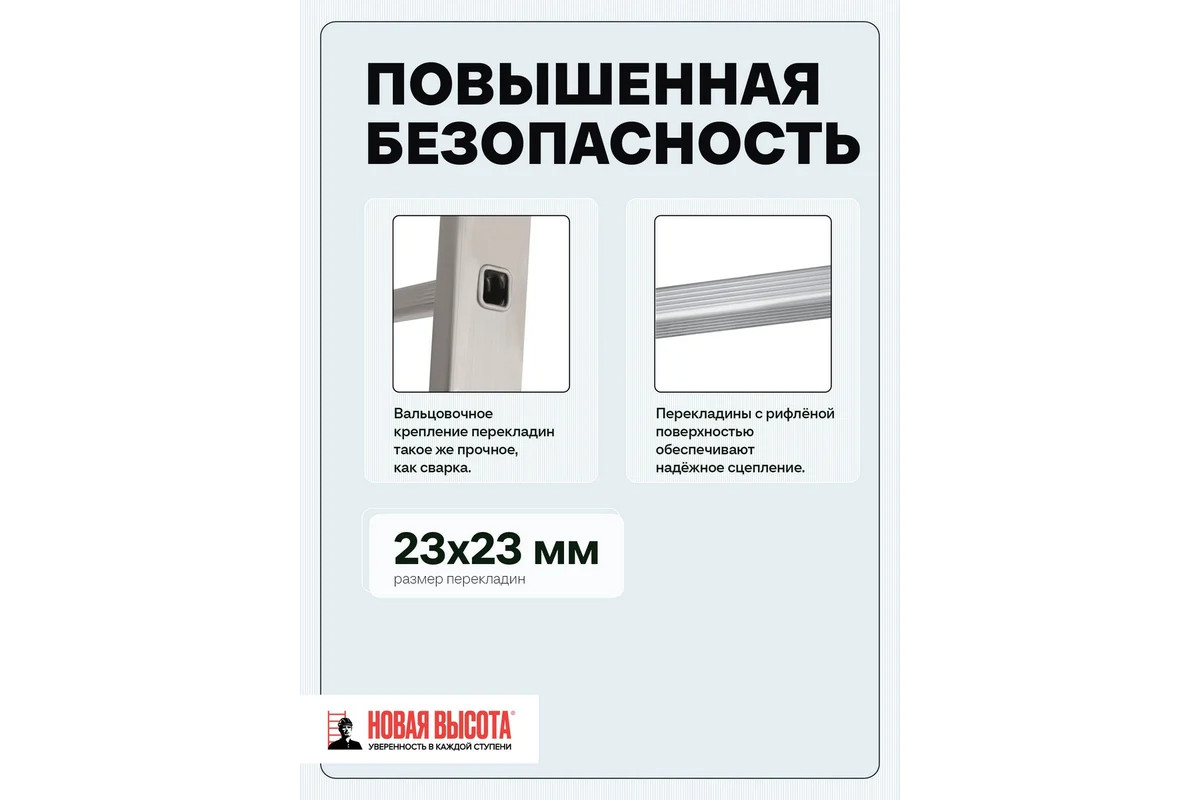 - Преимущества Новая Высота Лестница сделана из алюминиевого профиля - прочность и надежность;