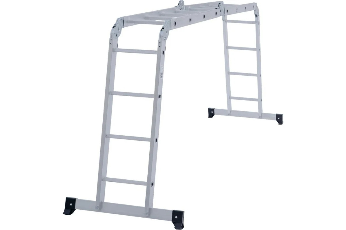 Четырехсекционная лестница-трансформер Новая Высота 4х4 ступени отлично подойдёт для ремонтных работ. Многофункциональность. Лестница легко преобразуется в помост, стремянку, приставную лестницу, приставную согнутую лестницу. Качество. Модель оснащена стойками с дополнительным усилением в наиболее нагруженных местах для повышения жесткости. Удобство. Шарнирные замки регулируются одной рукой. Долговечность. Благодаря многократной развальцовке в соединении ступеней со стойками изделие имеет долгий срок службы.