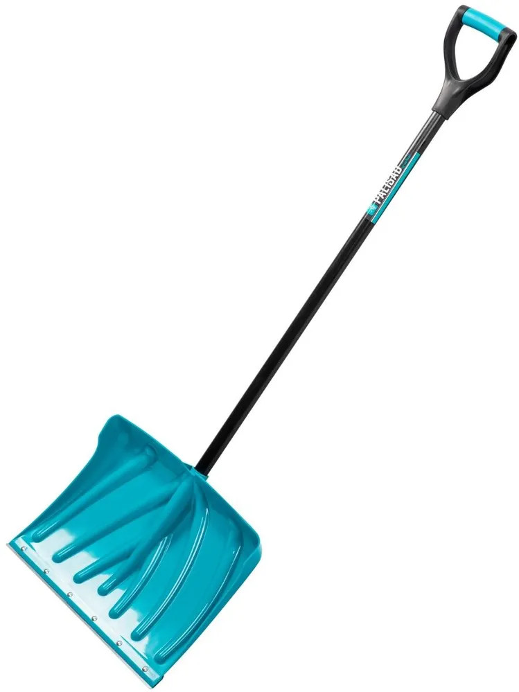 Пластиковая лопата с металлопластиковым черенком, используется для уборки снега. Изготовлена из морозостойких материалов и рассчитана на эксплуатацию при температуре до -50 градусов. Инструмент весит всего 1,49 кг, поэтому им могут работать любые пользователи. Лопата пригодится для расчистки дорожек, тротуаров, площадок, подъездных путей к дому или гаражу. Преимущества: - Ковш изготовлен из полипропилена, а черенок из металлопластика, поэтому они невосприимчивы к коррозии. - Ребра жесткости обеспечивают устойчивость лопаты к повышенным нагрузкам. - Глубокий ковш способен захватывать и удерживать большое количество снега, что повышает эффективность работы. - Благодаря стальной окантовке кромки ковша лопата легко справляется с плотным снегом и настом. - Дополнительная обрезиненная рукоятка обеспечивает комфорт при длительной работе.