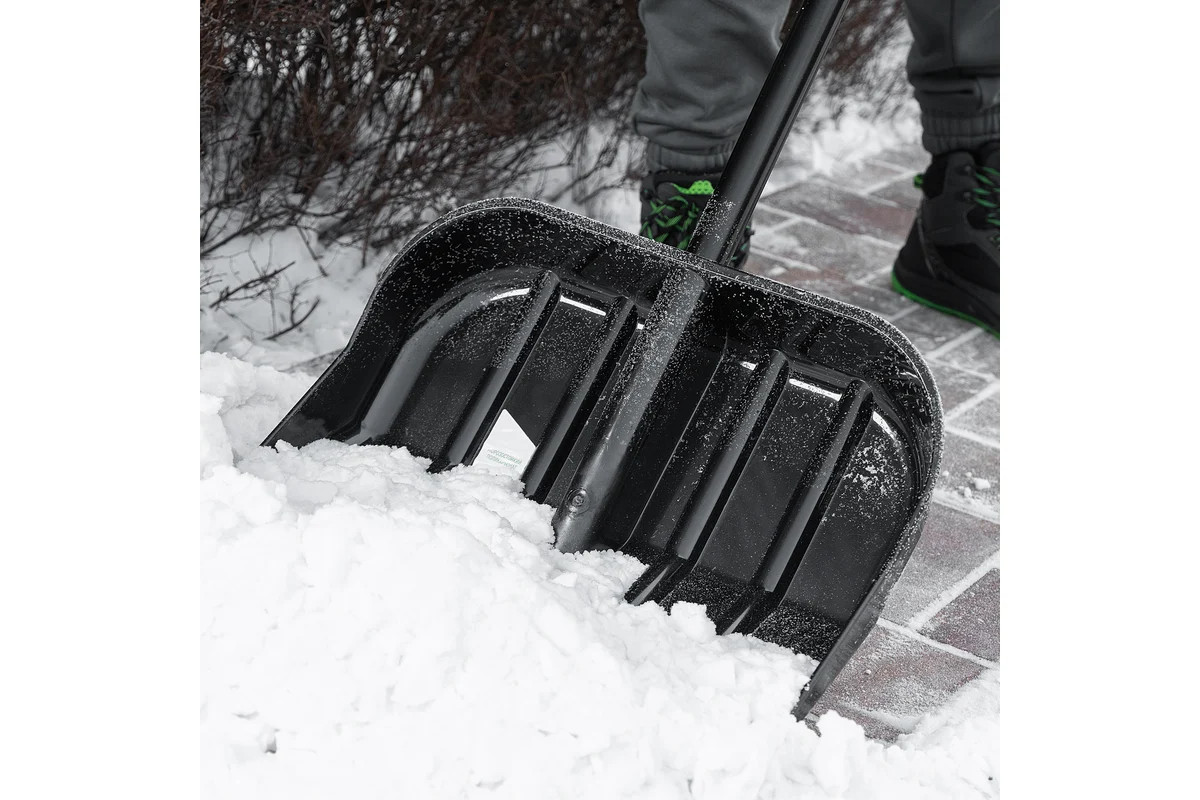 Ударопрочный поликарбонат обеспечивает долговечность и надежность лопаты при работе с снегом.