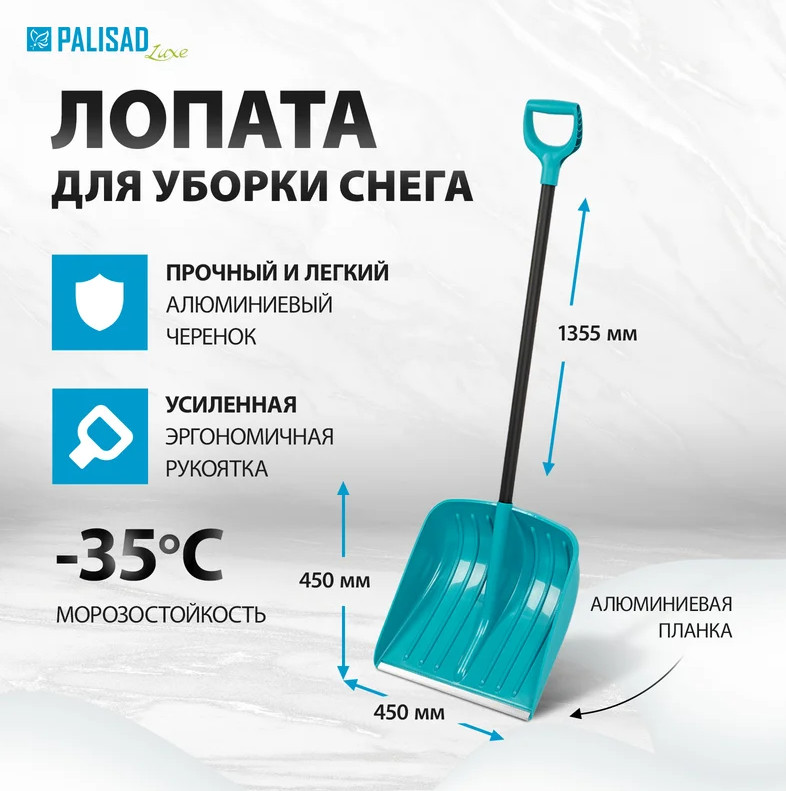 Лопата для уборки снега полипропилен 450х450х1355 мм алюминиевый черенок PALISAD