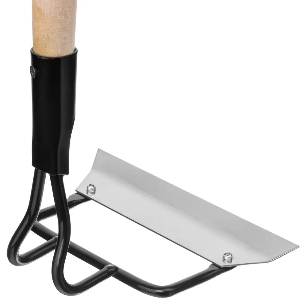 Мотыга Сибртех 62329 из нержавеющей стали, размером 200 х 50 х 1300 мм, с деревянным черенком, используется для рыхления почвы и уничтожения сорняков, а также окучивания растений. Прочный и устойчивый к коррозии инструмент прослужит долго. Черенок уменьшает нагрузку на позвоночник при длительной эксплуатации. Мотыга пригодится для ухода за садово-огородными культурами. Преимущества: - Эффективная работа — режущая кромка остро заточена, поэтому мотыга легко срезает сорняки и рыхлит даже плотную почву. - Долговечность — черенок изготовлен из древесины твердых пород, тулейка и державка покрыты порошковой эмалью для защиты от коррозии. - Прочная конструкция — полотно надежно соединено с державкой с помощью заклепок. - Комфортная эксплуатация — отшлифованный черенок удобно держать в руках.