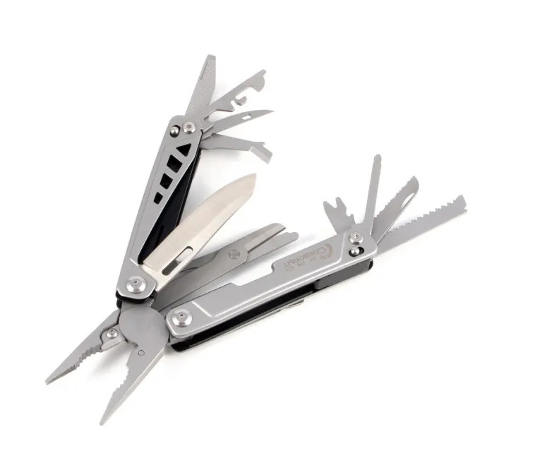Мультитул «СЛЕДОПЫТ Pro» - набор из 15 предметов профильного или повседневного инструмента, заключенный в одном компактном корпусе. Имеет фиксаторы, которые предотвращают самопроизвольное складывание инструментов. Оснащен зажимом для крепления на ремне. Армированный чехол в комплекте. В комплект мультитула входят: • плоскогубцы тонкие; • стандартные плоскогубцы; • напильник; • кусачки; • крестообразная отвертка; • малая плоская отвертка; • открывалка для бутылок; • консервный нож; • ножницы; • нож; • шило; • открыватель коробок; • ногтечистка; • зазубренный нож; • пила.