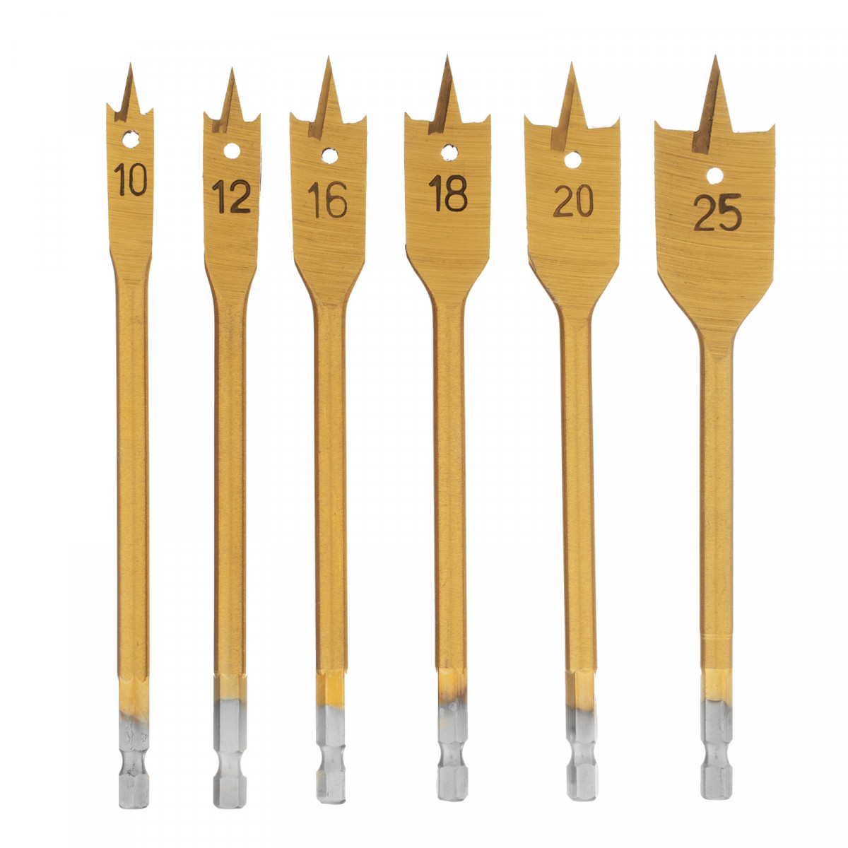 Сверло по дереву перовое 10, 12, 16, 18, 20, 25 - 6 шт