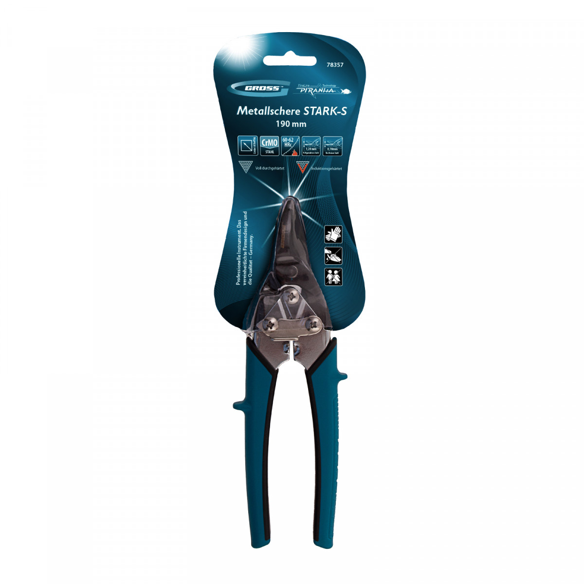 Ножницы по металлу "Piranha", 190 мм, прямой рез, сталь СrM, двухкомпонентные рукоятки Gross