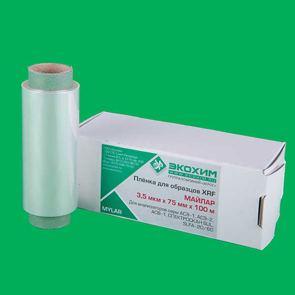 Пленка применяется в качестве окна измерительной кюветы рентгенофлуоресцентных анализаторов (ЭКРОС-7700, АСЭ-1, АСЭ-2, Lab X3500, Lab X5000, Спектроскан -S,Спектроскан -SL, Спектроскан -SUL, Спектроскан -SE, SLFA-20 и др.) Предлагаемая пленка рекомендована ГОСТ Р 51947, ГОСТ Р 52660, ISO 20847 к применению при определении массовой доли серы в нефти и нефтепродуктах. Особенности: Плёнка прозрачна для рентгеновских лучей. Технические характеристики: - Толщина - 3,5 мкм; - Упаковка - Рулон 75мм х 100м. Транспортные данные/габариты/вес: 1 коробка., 130 х 50 х 50 мм. Вес 0,1 кг Базовая комплектация: Плёнка майларовая- 1 рулон. Пленку майларовую (лавсановую) (3,5 мкм х 75 мм, рулон/100 м) можно купить в нашем магазине с доставкой по России и СНГ. Для жителей Санкт-Петербурга предусмотрен самовывоз со склада ЭКРОСХИМ. Мы гарантируем качество наших товаров. Увидеть сертификаты, свидетельства, лицензии, паспорта на оборудование вы можете в разделе «Документация». Покупая наше оборудование вы получаете методическ