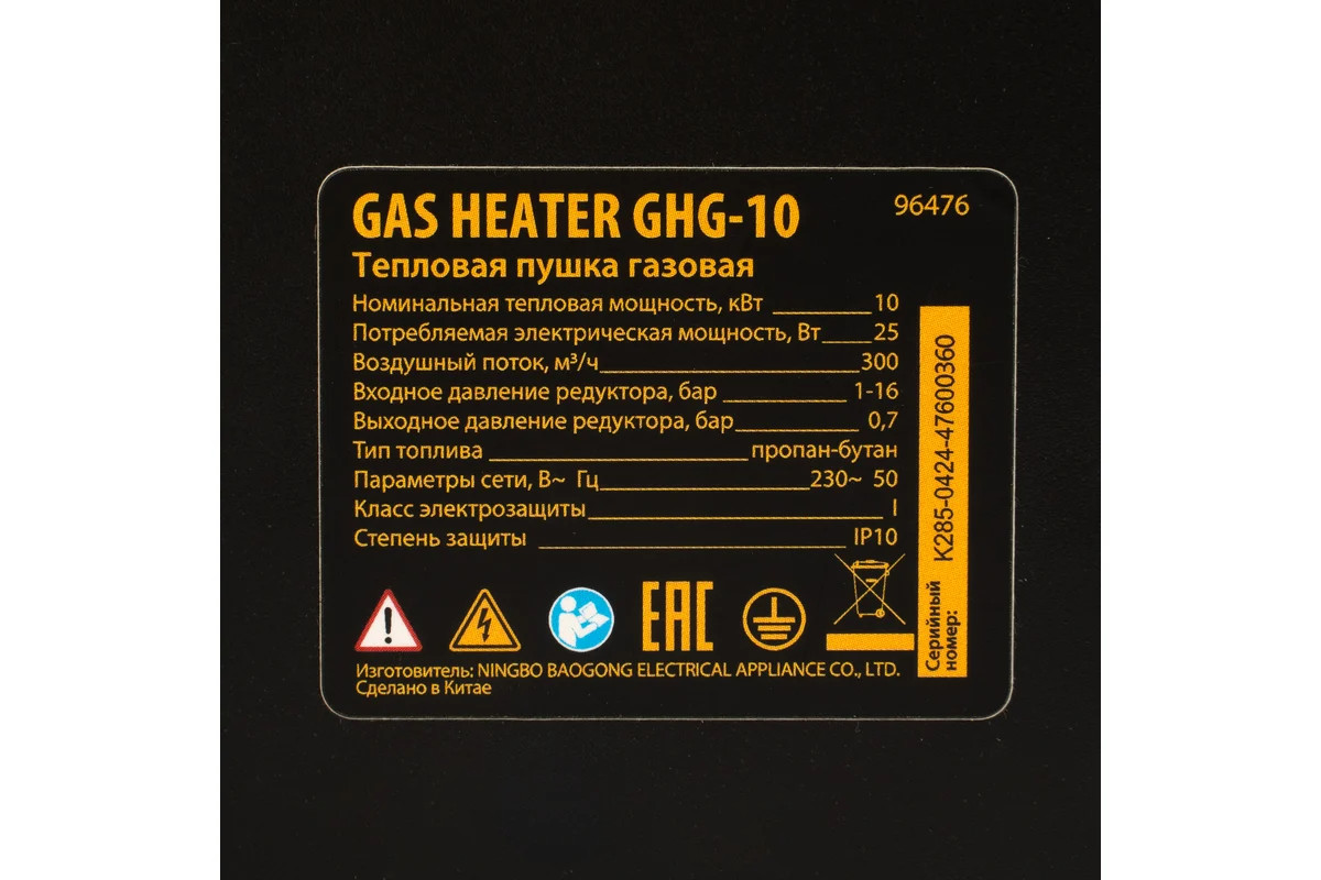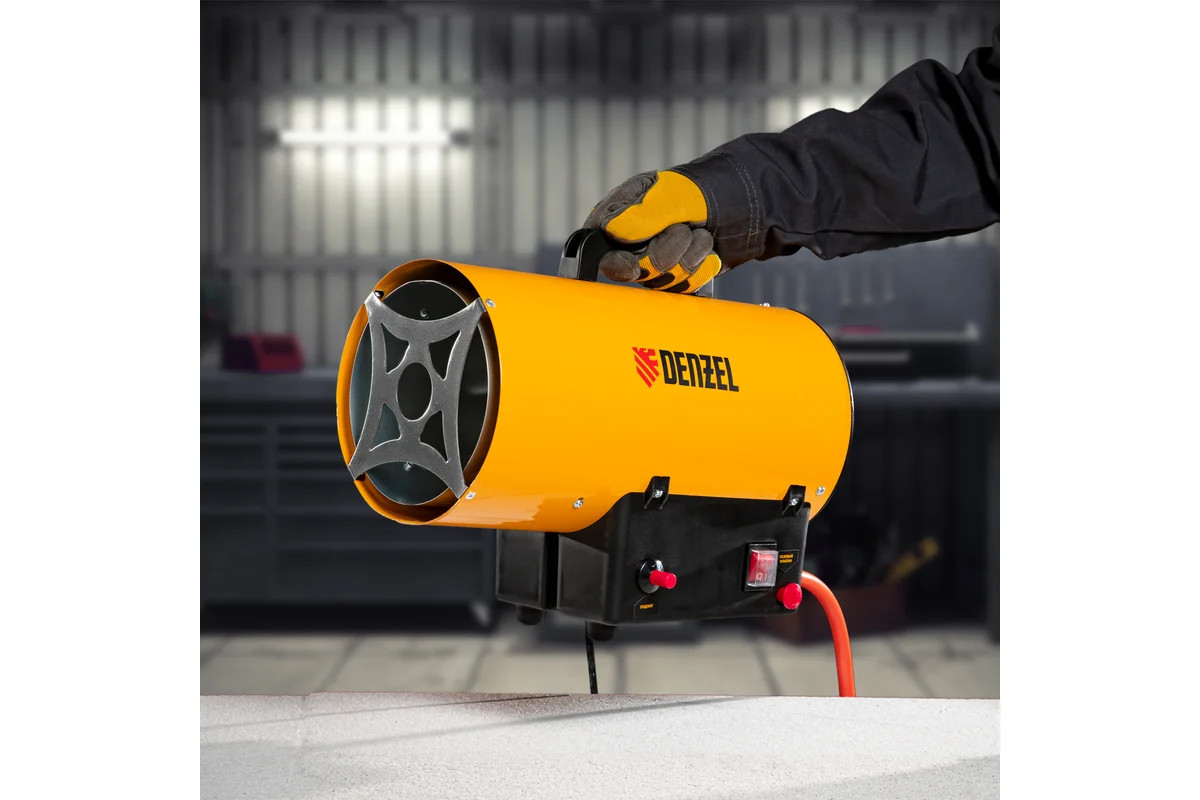 Газовая тепловая пушка Denzel GHG-10, 10 кВт, 300 м3/ч, пропан-бутан 96476 имеет большую тепловую мощность и применяется для работы в мастерских, гаражах, строящихся объектах. Также модель нашла особую популярность при установке натяжных потолков.