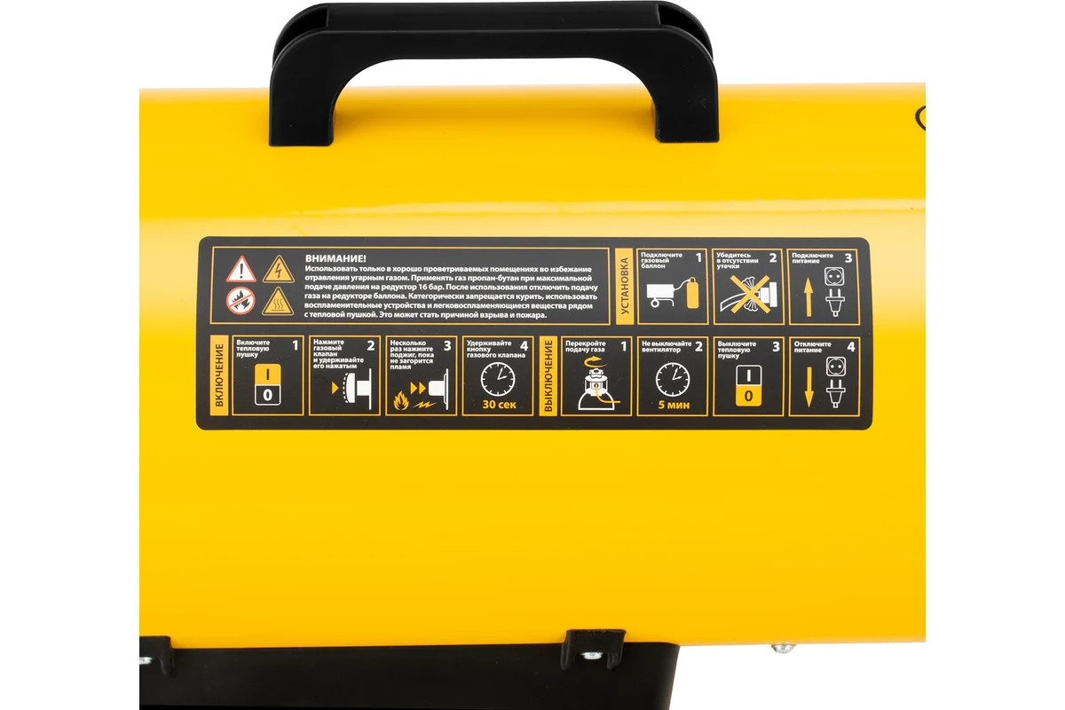 • Широкая платформа придает тепловой пушке устойчивость.