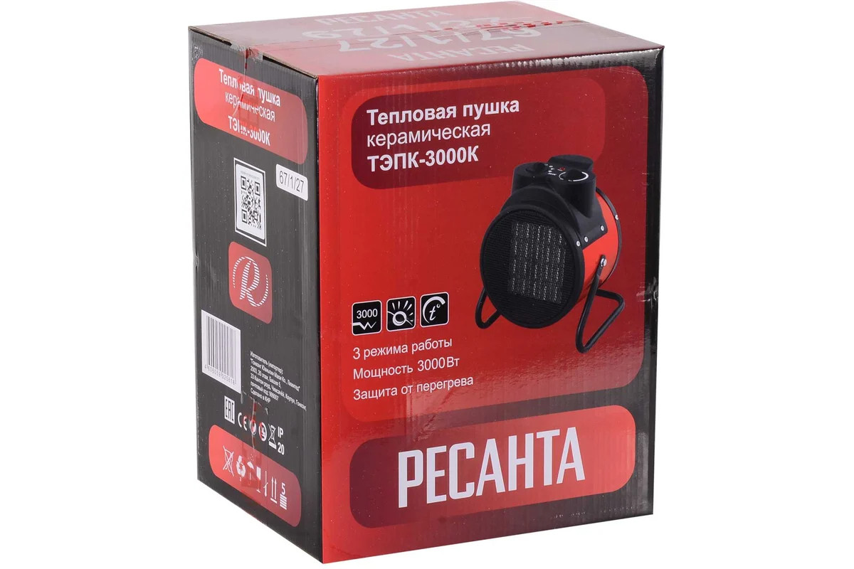 Пушка тепловая РЕСАНТА ТЭПК-3000K керамический нагревательный элемент круглая