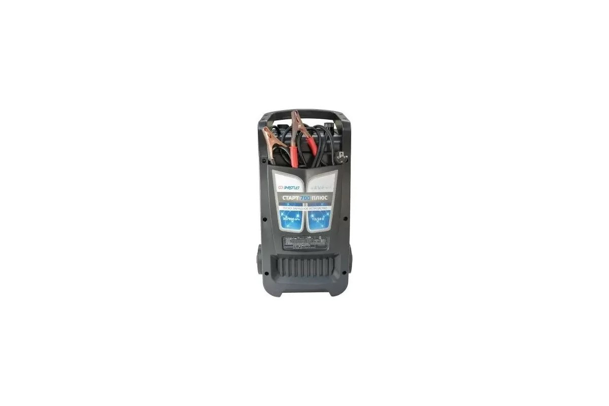 Пуско-зарядное устройство Энергия СТАРТ ПЛЮС 700, Е1702-0003 поможет эффективно зарядить все типы свинцово-кислотных аккумуляторных батарей и запустить двигатель автомобиля. Модель имеет таймер времени заряда. Предусмотрена защита от перегрузки и перегрева, короткого замыкания и неправильной полярности. Для хранения проводов производитель оснастил устройство специальным карманом. Мобильность прибору обеспечивают удобные колеса.