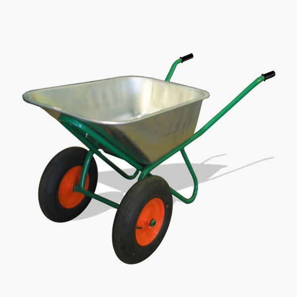 Двухколесная строительная тачка с пневмоколесом используется для перевозки садовых и строительных материалов. Два пневматических колеса способствует хорошей проходимости и отличаются бесшумностью при движении. Корыто из оцинкованной стали с полимерным покрытием отличается устойчивостью к воздействию коррозии для долгого срока службы. Резиновые накладки обеспечивают надежное удержание тачки. Объем кузова 110л, грузоп-сть 250кг, колесо 3.25-8, толщина метала кузова 0,7 мм, трубы 30*25 мм.
