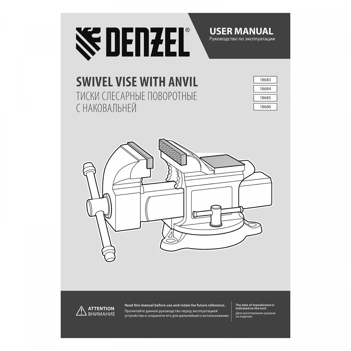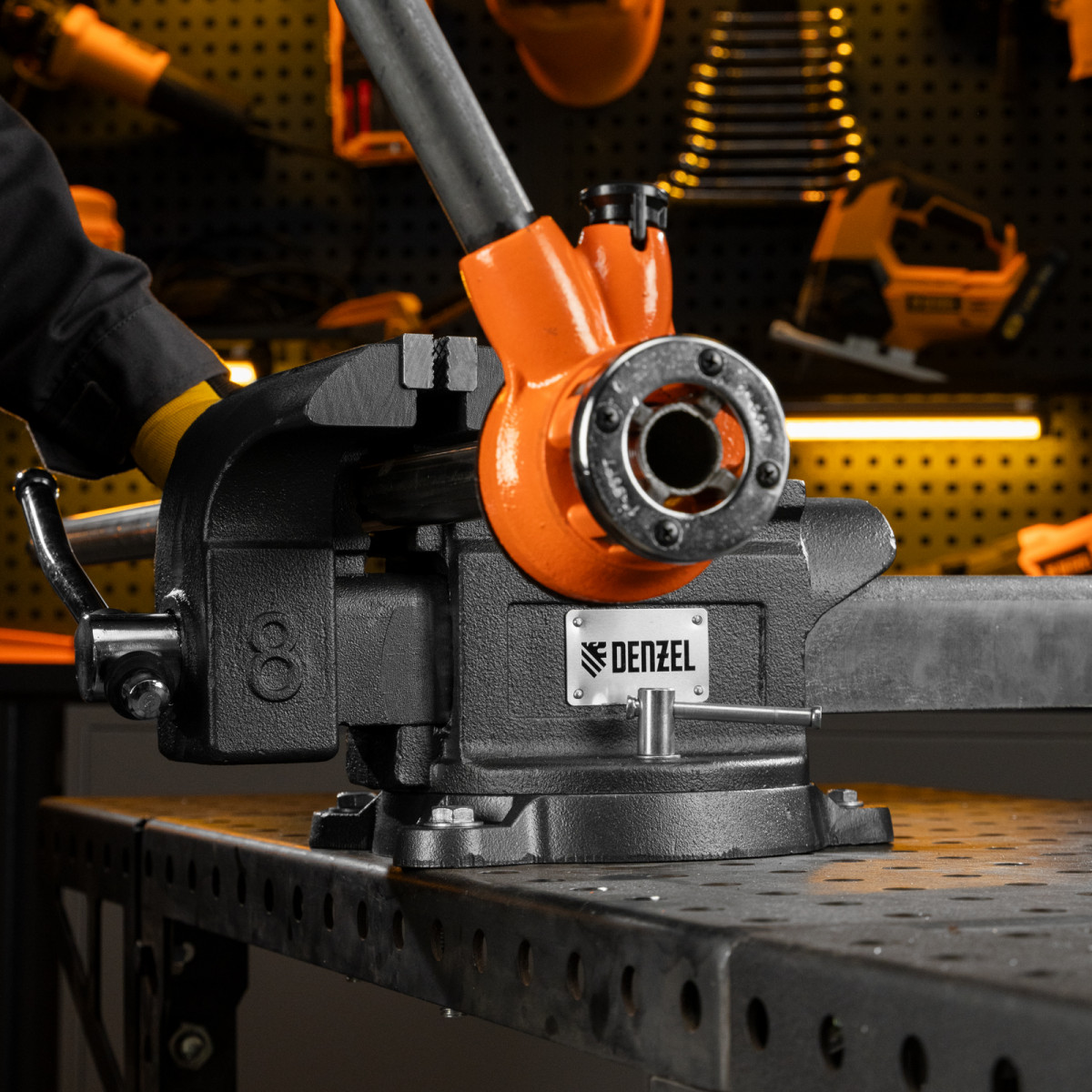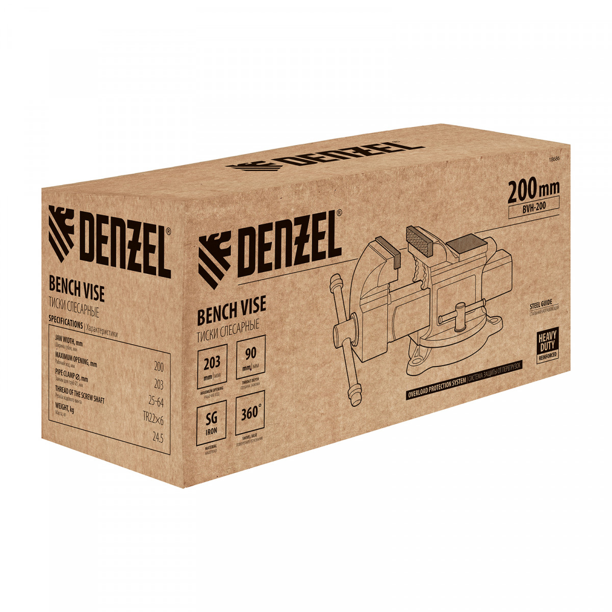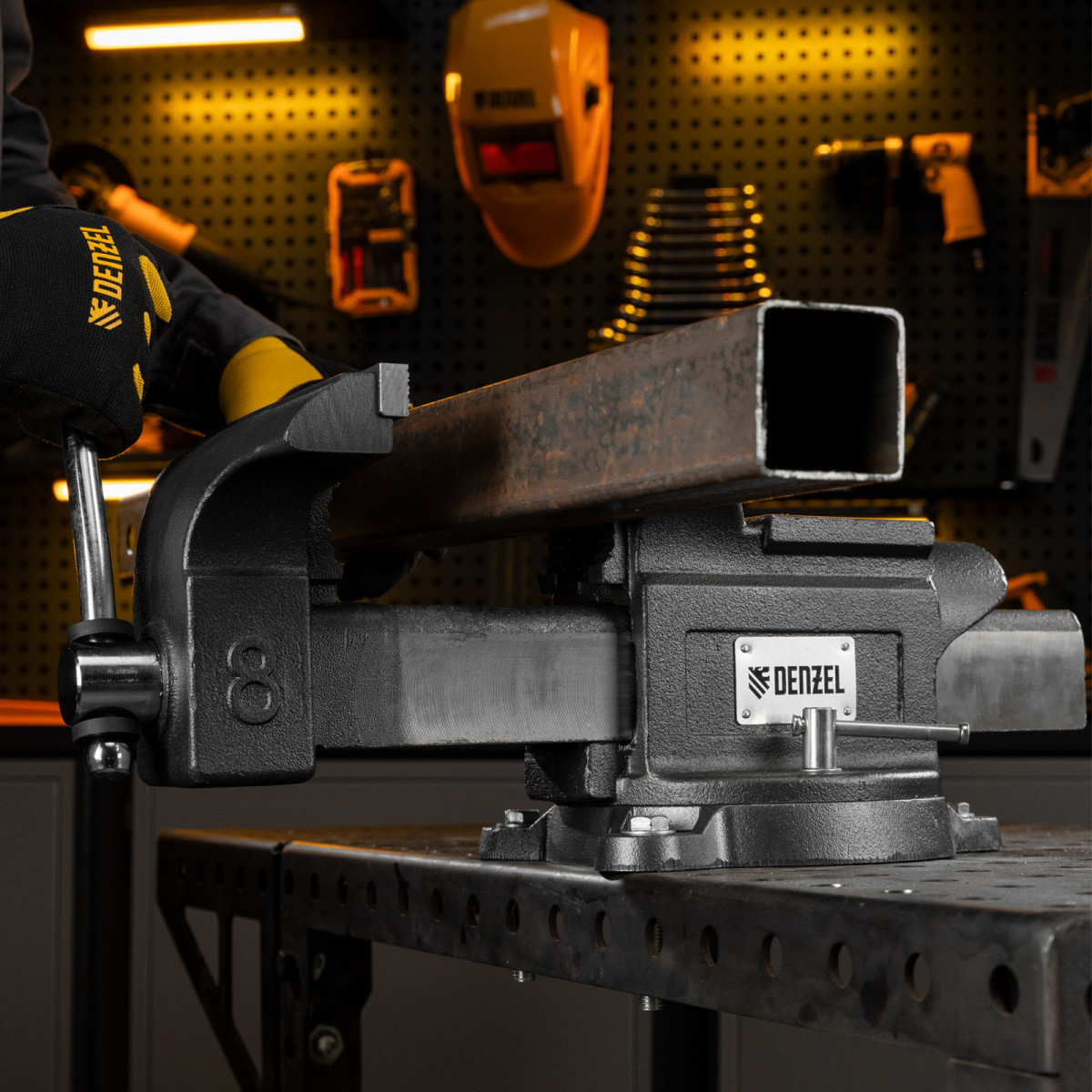 Тиски слесарные BVH-200, 200 мм, поворотные, стальная направляющая, с наковальней //Denzel