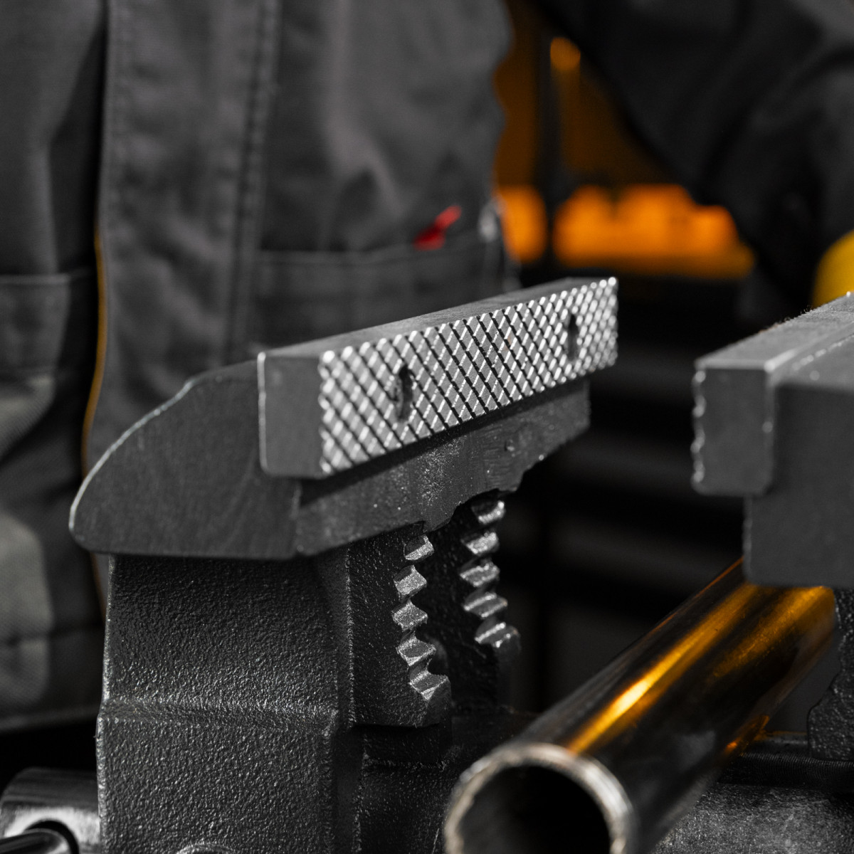 • Функциональность — тиски поворачиваются на 360°, что позволяет менять и выбирать позицию инструмента для удобной работы с заготовкой.
