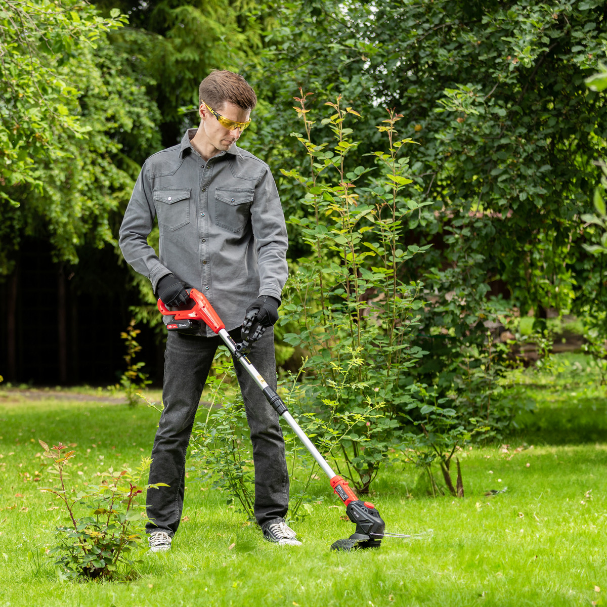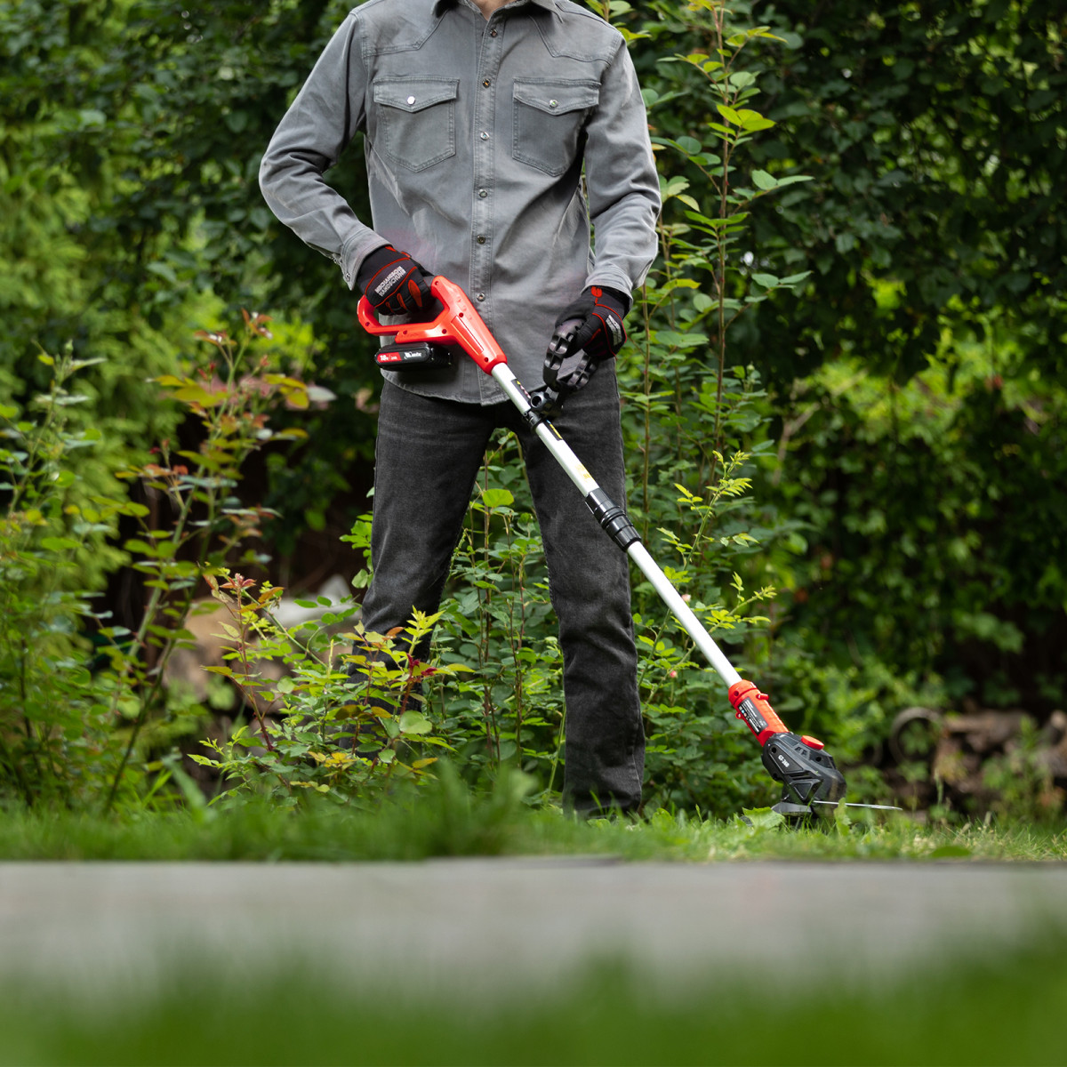 - Комфортная эксплуатация — дополнительная рукоятка позволяет легко удерживать и направлять триммер.