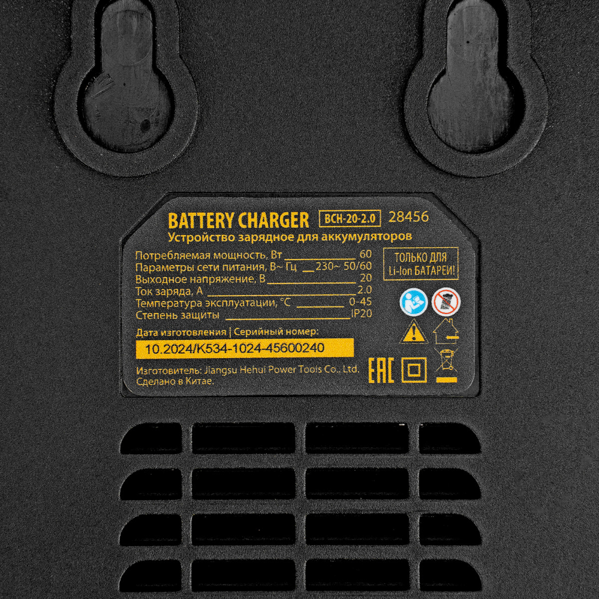 Устройство зарядное для аккумуляторов BCH-20-2.0, Li-Ion, 20 В, 2,0 А// Denzel