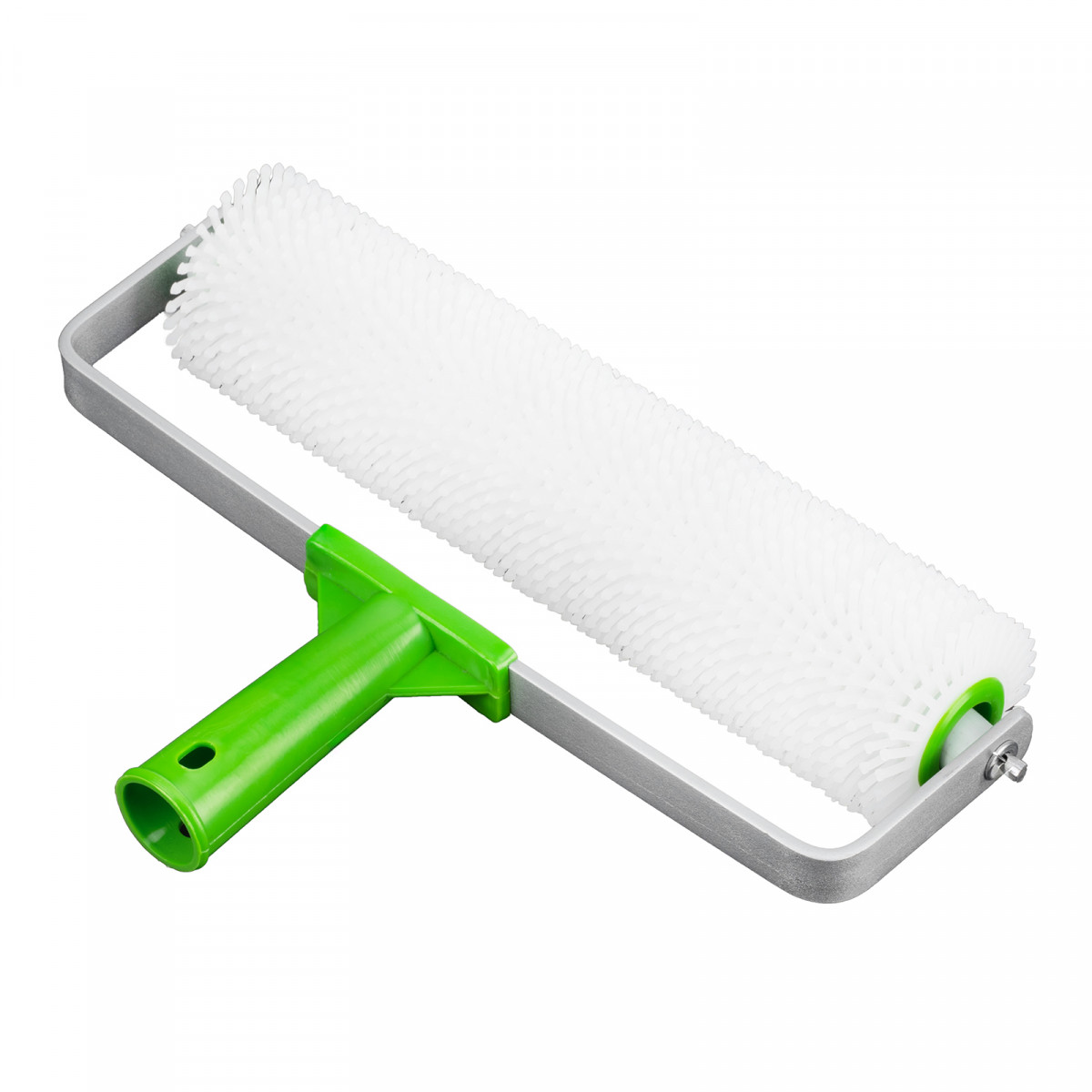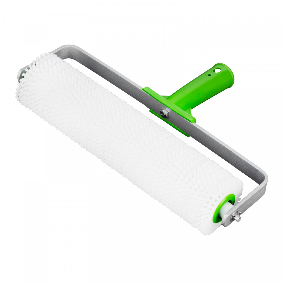 Игольчатый валик Сибртех 81102 длиной 300 мм используется для монтажа наливных полов. Позволяет удалять пузырьки воздуха из толщи еще жидкого покрытия путем его интенсивного прокатывания по распределенному на поверхности основы раствору. Валик длиной 300 мм можно использовать на поверхности большой площади. Длина иголок 13 мм оптимальна для покрытий небольшой толщины.