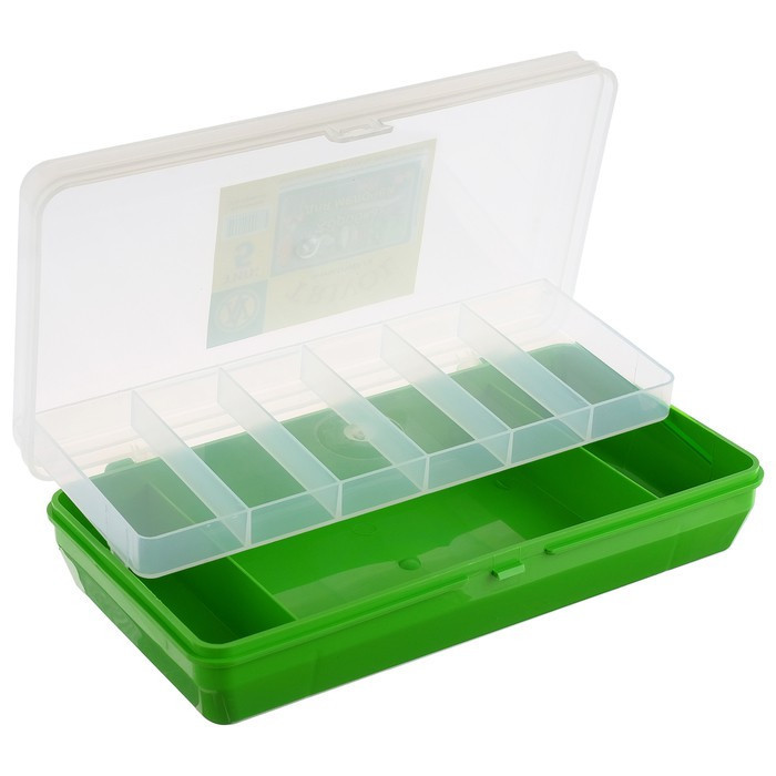 Коробка прекрасно подойдет для хранения рыболовных снастей, мелких деталей и других бытовых мелочей.